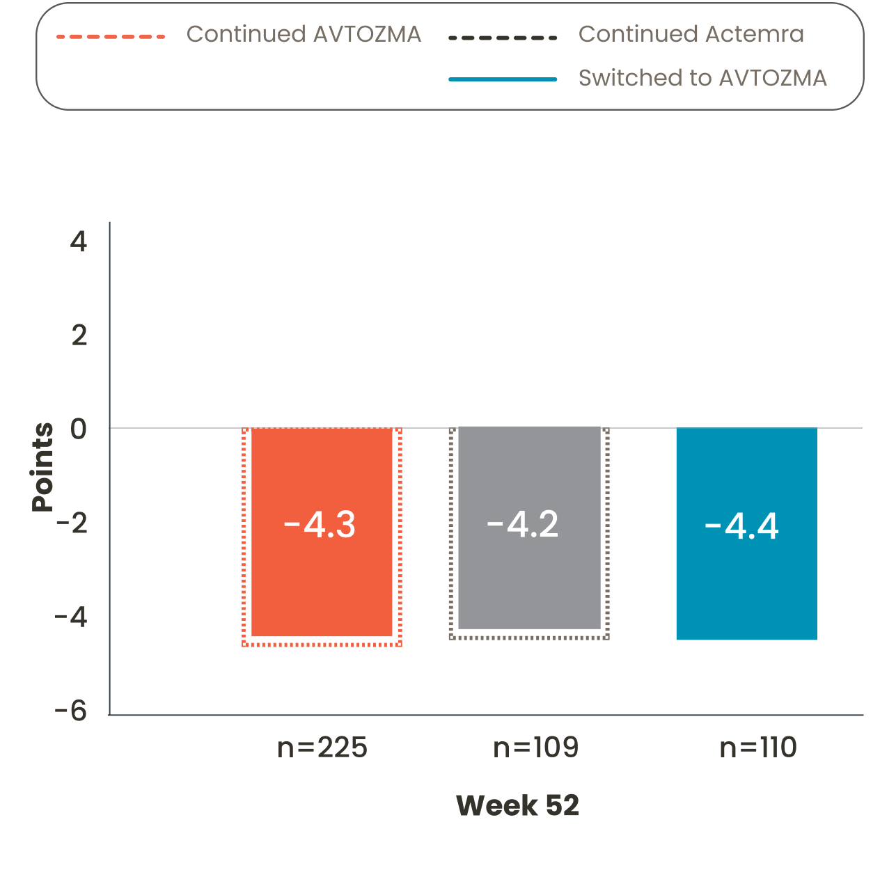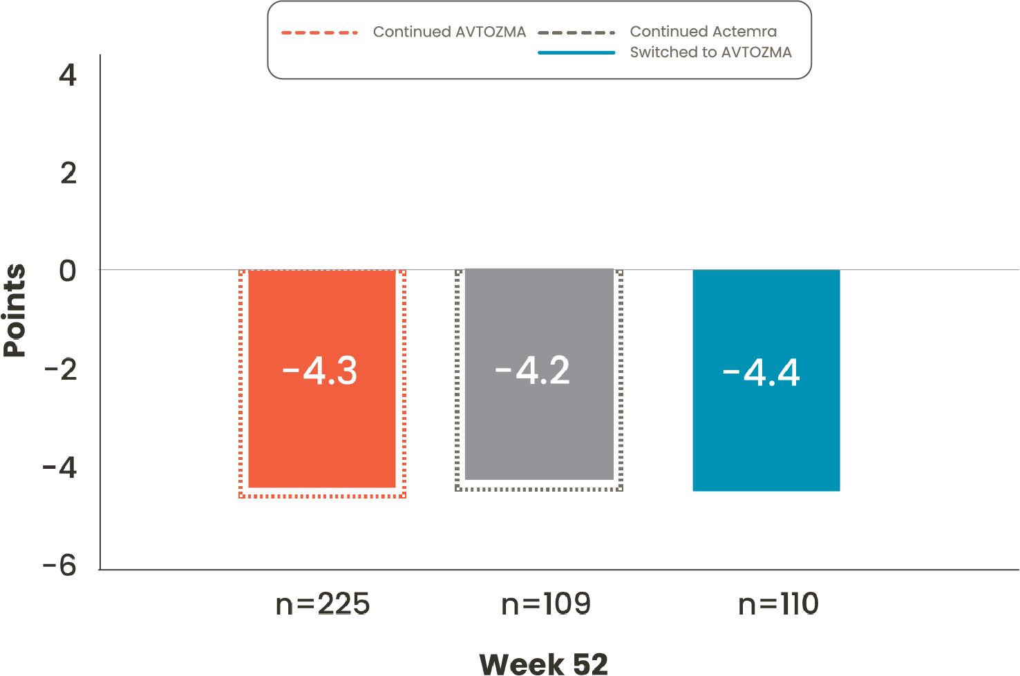 AVTOZMA and Actemra group mean DAS28-ESR scores were consistent—including in the switch population5